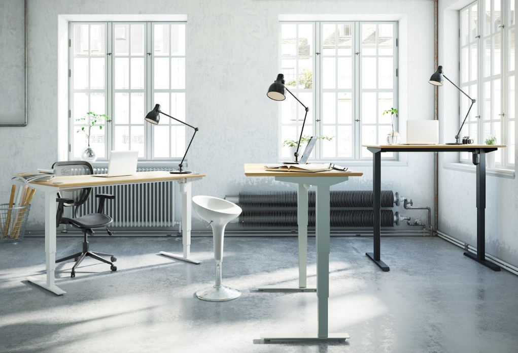 Vi leverer hev/senk stativ til alle type bordløsninger. Små vegghengte eller til større kontormiljø. Skift ut faste ben med elektrisk hev/senk for å bedre arbeisdmiljøet, og er platene på dagen bord like god sparer du også miljøet med gjennbruk.