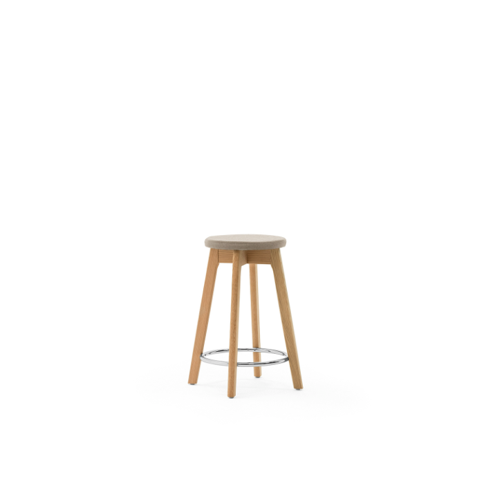 En klassisk lav barkrakk i nordisk design. Axo barkrakk med sittehøyde på 64 cm, egner seg ypperlig til en rask frokost ved kjøkkenbenken – eller til å samle familie og venner for sosialt samvær over en lunsj. Axo passer til en bordhøyde på 90 cm og leveres delvis montert. Barkrakken produseres i klarlakkert eik som standard