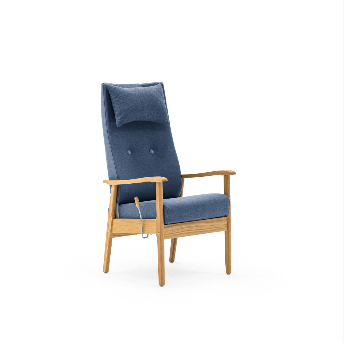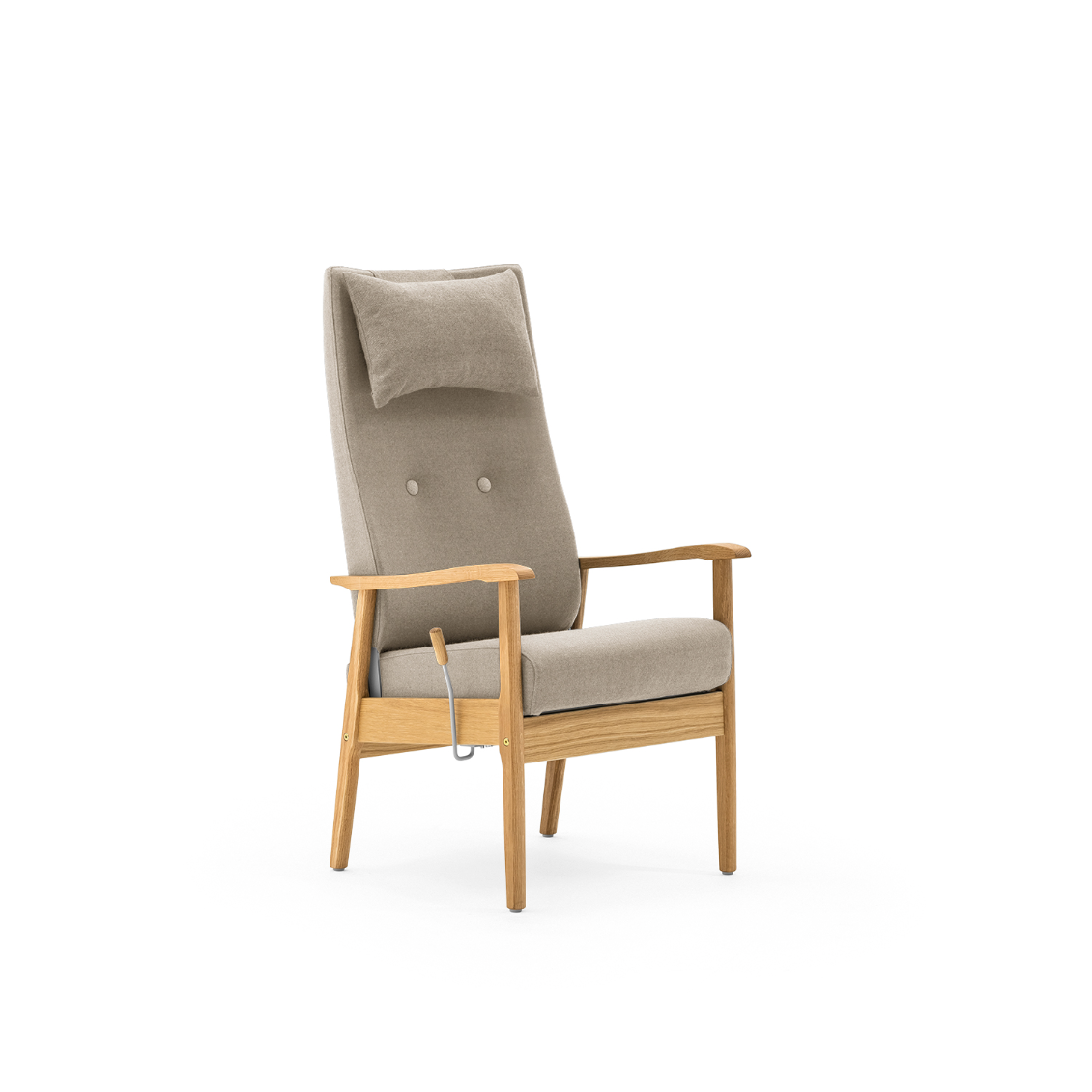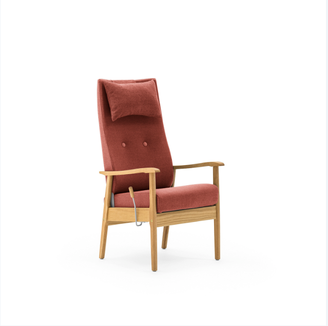 Hvilestolen produseres i klarlakkert bjørk som standard. (NB! avbildet i eik)